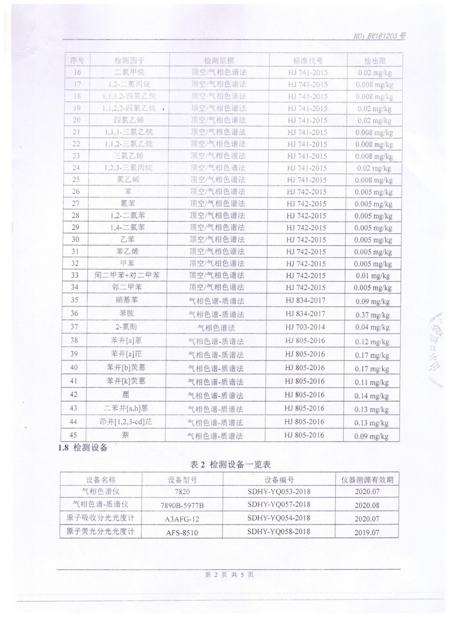 2018年土壤檢測(cè)報(bào)告